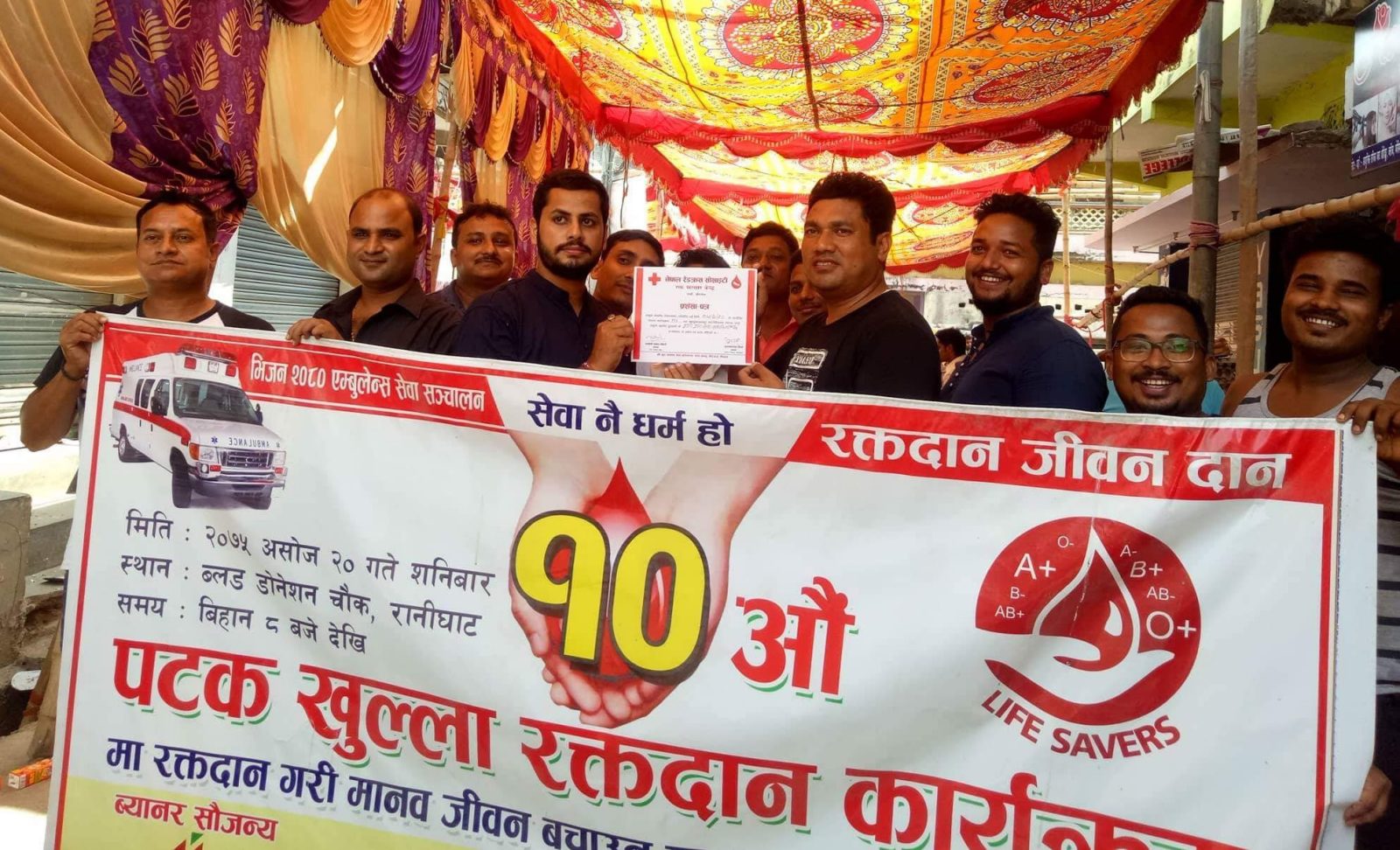 रानिघाटमा भएको कार्यक्रममा शतिस सिंह राजपुत, शुषमा सिंह राजपुत, राजु गुप्ता, संजय सराफ, अारसी यादव, रंजिता गुप्ता, राधेश्याम पटेल, दिलिप राैनियार, रिपु गिरी, चन्दन गुप्ता, मनाेज गुप्ता लगायतकाले रक्तदान गरेको रक्त संचार केन्द्र वीरगंजका प्रमुख सौरभ राज पाण्डेले वताए ।