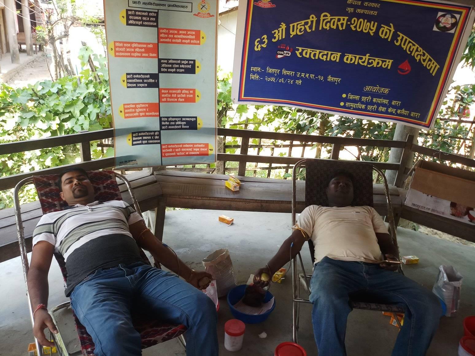 जिल्ला प्रहरी कार्यालय बारा, सामुदायिक प्रहरी सेवा केन्द्र कलैयाको संयुक्त आयोजनामा रक्तदान कार्यक्रम भएको थियो ।