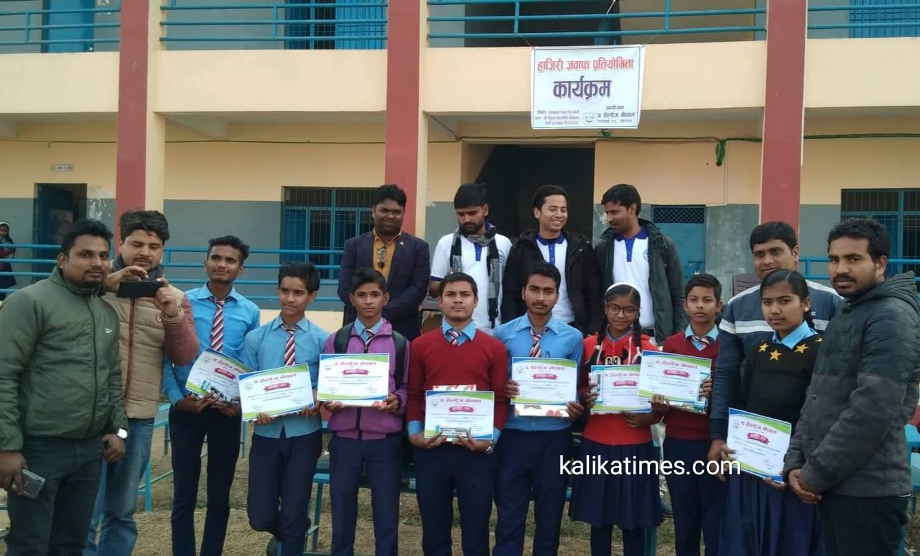 वीरगंज : द हेल्पेज नेपालको आयोजनामा सिद्धार्थ माद्यामिक विधालय, चिनिमिल पिपरा, वीरगंजमा शुक्रबार हाजरी जवाफ प्रतियोगिता सप्पन्न भएको छ । विधालयकी शिक्षिका शशी गिरिको सभापतित्वमा भएको प्रतियोगितामा मकालु समूह प्रथम, अन्पूण समूह दोस्रो र माछापुच्छ्रे समूह तेस्रो भेएको थियो ।