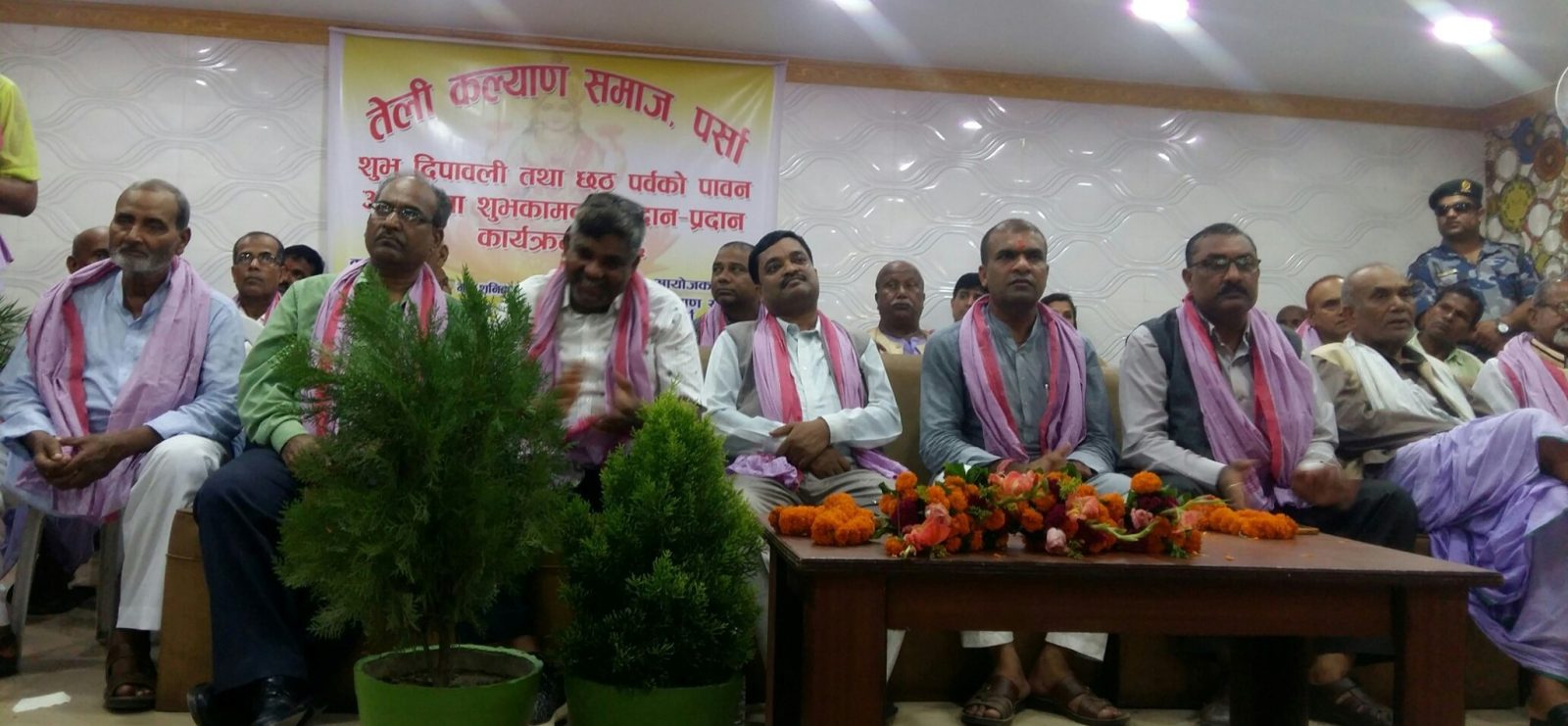तेली कल्याण समाज पर्साका अध्यक्ष ध्रुब साहको अध्यक्षतामा भएको कार्यक्रममा प्रदेश सभा सदस्य राजेस्वर साह, तेली कल्याण समाज बिरगञ्जका अध्यक्ष पन्नालाल साह, पुर्ब संबिधान सभा सदस्य आत्माराम साह, रामचन्द्र साह लगायतले शुभकामना मन्तव्य व्यक्त राखेका थिए ।