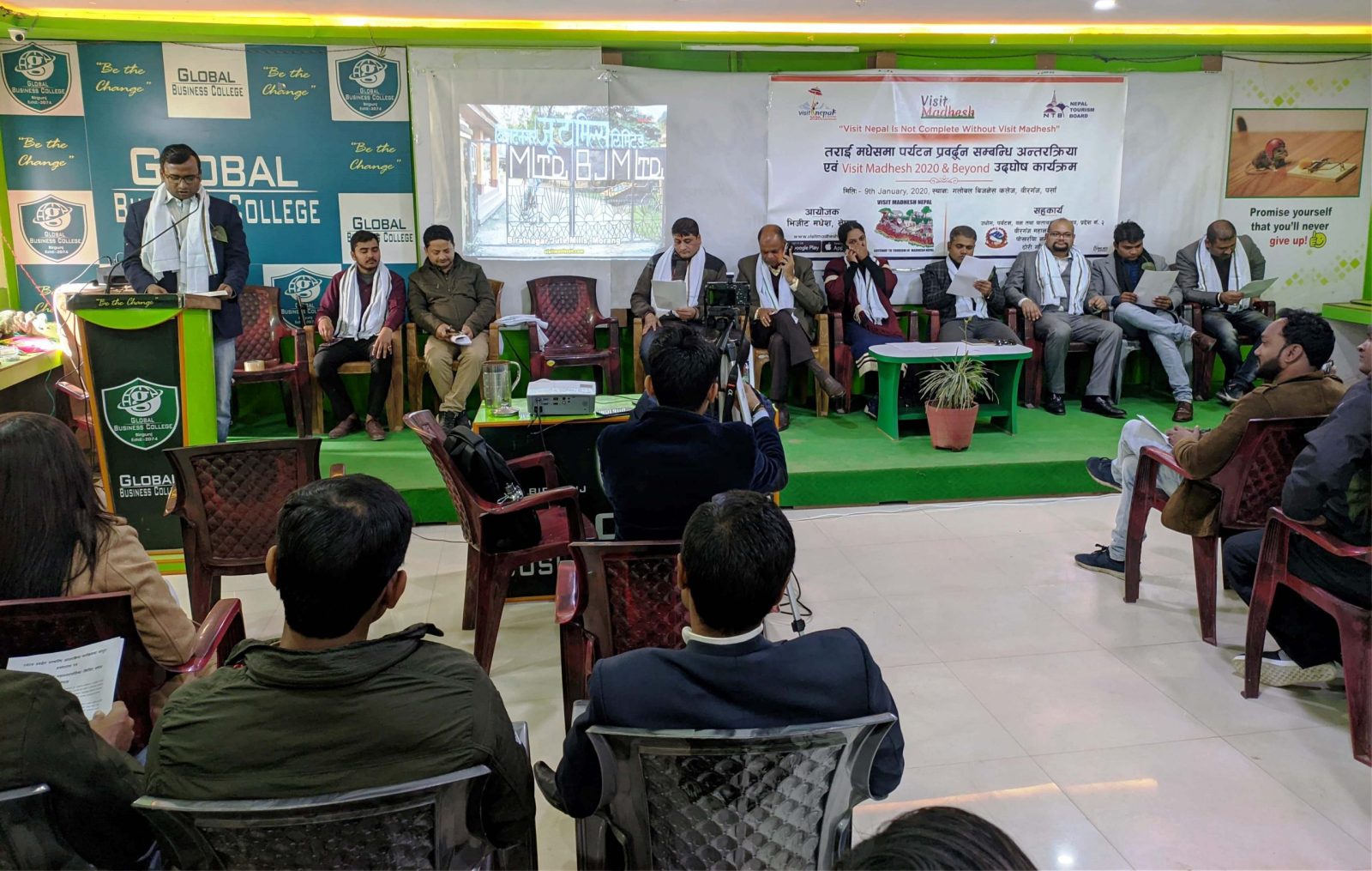 गलाेबल विजनेश कलेजकाे सभा हलमा भएकाे कार्यक्रममा भिजिट मधेशका केन्द्रिय सदस्य एवम् सामाजिक अभियान्ता प्रकाश थारुले स्वागत मन्तव्य व्यक्त गरेका थिए । कार्यक्रमका सहभागिहरुलाई तराई मधेशकाे पर्यटन पर्वधनकाे लागि भिजिट मधेशले संचालनमा ल्याएकाे वेभसाइट बारे भिजिट मधेश वीरगंजका कार्यालय प्रमुख दिपु वर्णवाल र ज्याेति साहले जानकारी गराएका थिए ।