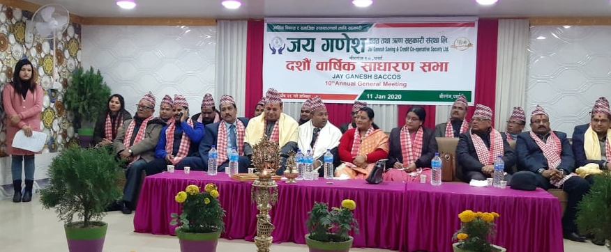 वीरगंज । जय गणेश बचत तथा ऋण सहकारी संस्थाको १० औं वार्षिक साधारण सभा आज वीरगंजमा सम्पन्न भएको छ ।