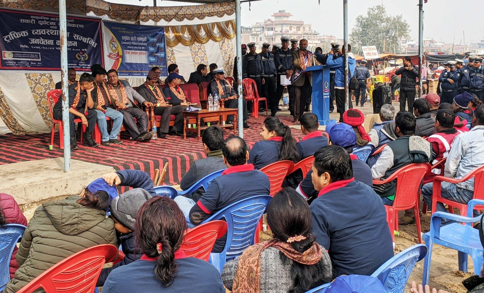 वीरगंज । ट्राफिक ब्यवस्थापन सम्बन्धि जनचेतना कार्यक्रम आज वीरगंजमा सम्पन्न भएको छ । जिल्ला ट्राफिक प्रहरी कार्यालय बीरगंज पर्साको आयोजना र राष्ट्रिय बाणिज्य बैंकको समन्वयमा वीरगंजकाे घण्टाघर नजिककाे पार्कमा कार्यक्रम भएको हो ।