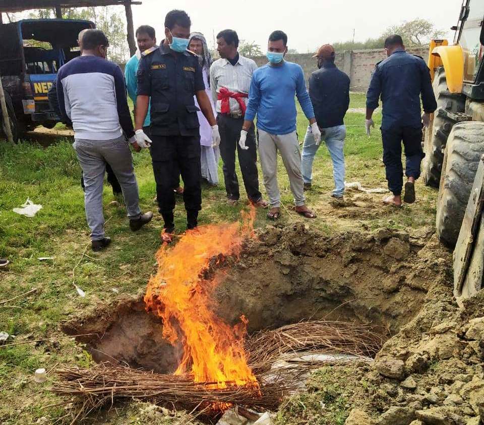 भारतबाट नेपाल भित्रयाइएकाे बरामद तथा नियन्त्रणमा लिइएकाे अवैध कुखुरा र माछा जेसिबिले खाडल खनेर क्वारेन्टाइन र पशुपंक्षी व्यवसायी संघकाे प्रतिनिधिकाे राेहबरमा खाडलमा गाडी नष्ट गरिएकाे इप्रका पाेखरियाका प्रहरी निरिक्षक चन्द्र कुमार सिंहले वताउनु भयाे ।