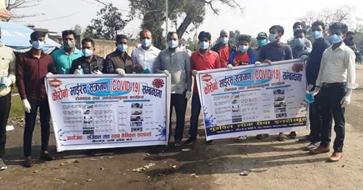 वीरगंज । काेराेना भाइरस संक्रमण राेकथाम सम्बन्धि कार्यक्रम आज पनि वीरगंजमा भएकाे छ । गुडविल लाेक सेवा इन्स्टीच्युट र सर्जिकल तथा ल्याब केमिकल सप्लायर्स वीरगंजलेे काेराेना भाइरस संक्रमण राेकथाम सम्बन्धि जनचेतनामूलक कार्यक्रम गरेकाे हाे ।