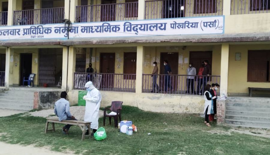 वीरगंज । काेराेना परिक्षणकाे लागि पाेखरियाकाे क्वारेन्टाइनमा रहेकाहरुकाे आज स्वाब संकलन गरिएकाे छ ।