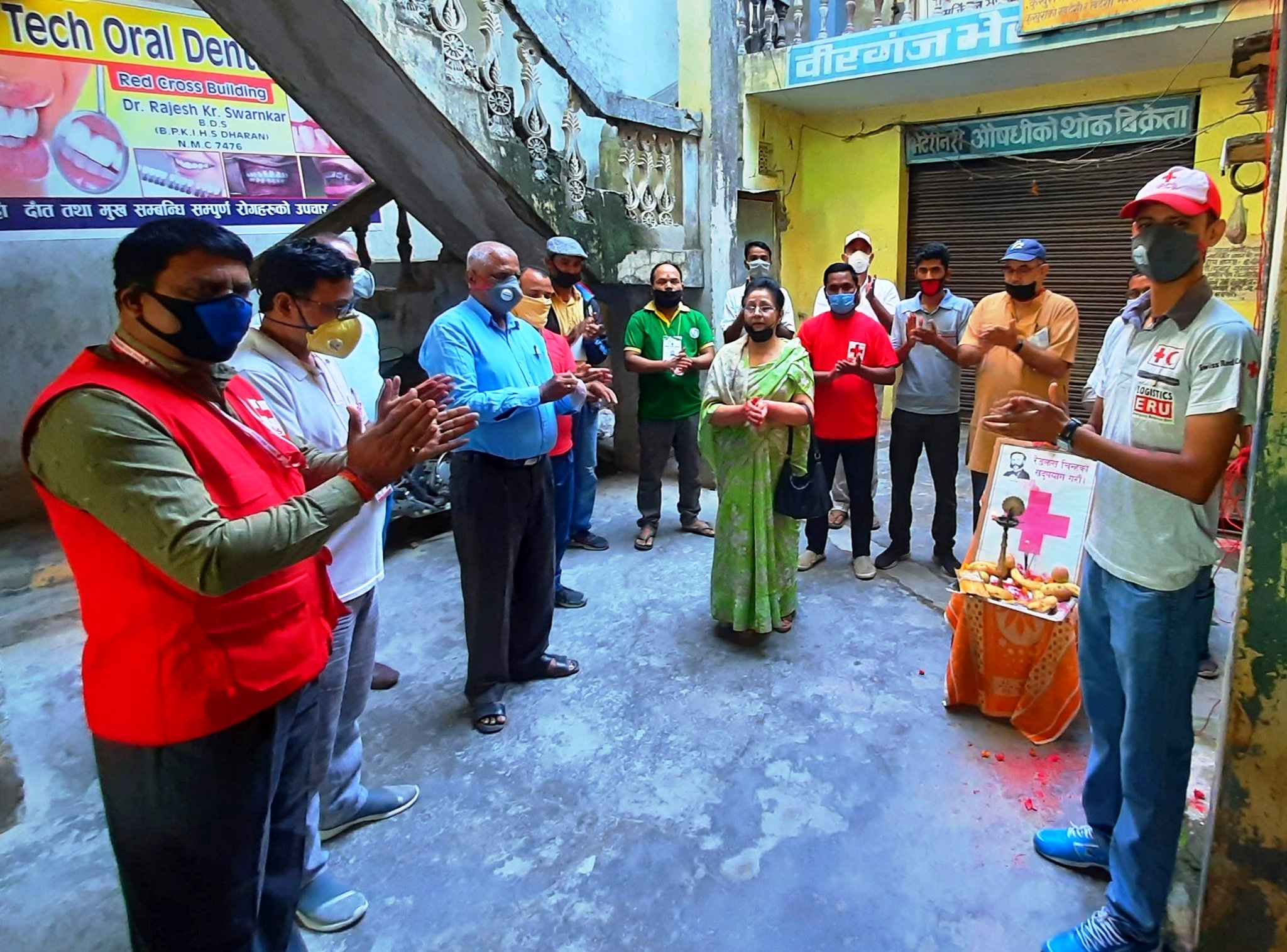 झण्डोतोलन एवं दिपप्रज्वलन पछि स्व.गिरिजा प्रसाद कोइराला फाउन्डेसनको सहयोगमा रेडक्र्स भवन र रक्तसञ्चार केन्द्रको भवनलाई सेनिटाइज गर्ने कार्यमा मन्त्री शैलेन्द्र कुमार चौरासीया, कोषाध्यक्ष महन्थ प्रसाद यादव, उपमन्त्री साबिर अहमद एराज, दिनानाथ रौनियार, लालबाबु सिह, भरत शर्मा, राजु शाह, उदर राज शर्मा, उमेस मिश्र, बिरशम्सेर प्रसाद कुर्मी, लक्ष्मीनारायण राउत, मन्ताज मिया लगायतको उपस्थिति रहेको थियो ।