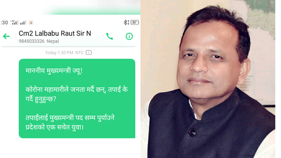 युवाहरुले बुधबार प्रदेश नं. २ का मुख्यमन्त्री लालबाबु राउत गद्दीलाई एसएमएस पठाएर ध्यानाकर्षण गराएका हुन् ।