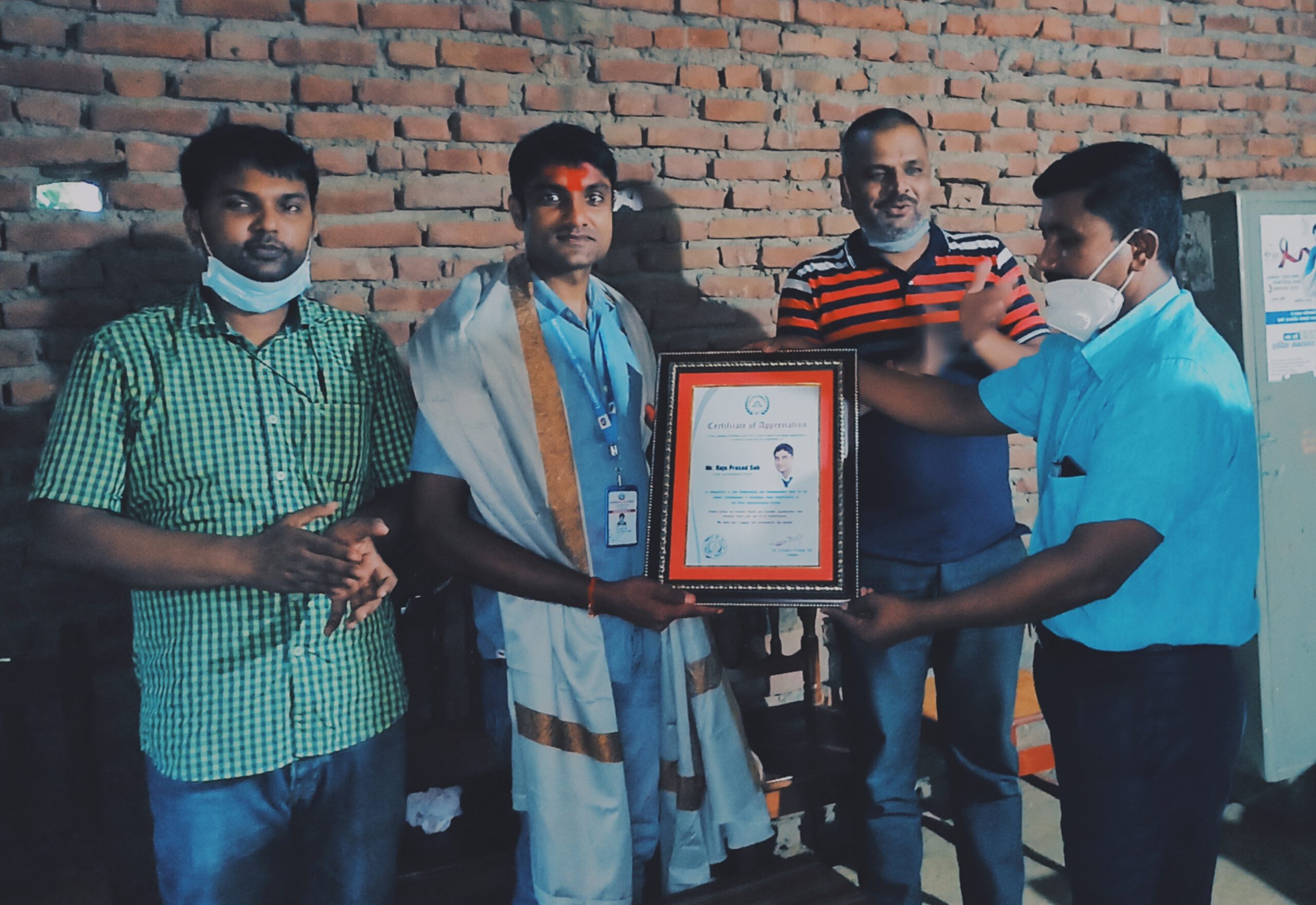 कार्यक्रममा संस्थाका अध्यक्ष छठु साहले प्रशासकिय अधिकृत साहलाई दाेसला ओढाएर सम्मान पत्रले सम्मान गरे । उनले प्रशासकिय अधिकृत साहकाे कार्यकाल अहिले सम्म कै प्रशासकिय अधिकृतहरु मध्ये उत्कृष्ट भएकाे वताए ।