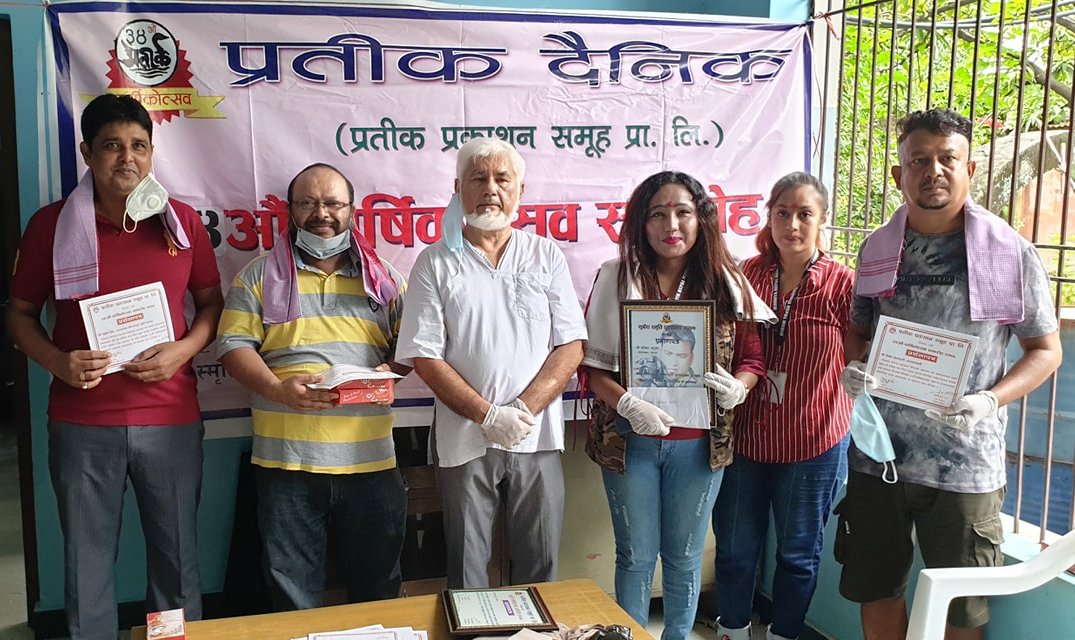 कोरोना सङ्क्रमण बेला भएकोले प्रतीक दैनिकको कार्यालयमा कार्यालयलाई विसङ्क्रिमत गरेर ग्लब्स, मास्क लगाई स्वास्थ्य र सुरक्षाको मापदण्ड पूरा गर्दै कार्यालय कर्मचारी र पुरस्कृत व्यक्तिहरूको मात्र सहभागितामा वार्षिकोत्सव कार्यक्रम पत्रिकाको कार्यालयमा आयोजना गरिएको प्रधान सम्पादक शर्माले बताउनुभयो ।