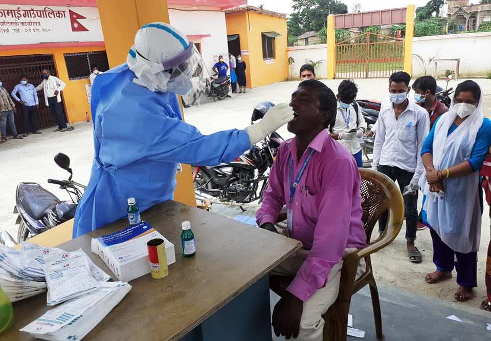 वीरगंज । पर्साकाे कालिकामाई गाउँपालिकाले काेराेना परिक्षणलाई निरन्तरता दिएकाे छ । आइतबारदेखी सुरु गरिएकाे पिसिआर परिक्षणकाे लागि स्वाब संकलन कार्य बिहिबार पनि जारी रह्याे ।