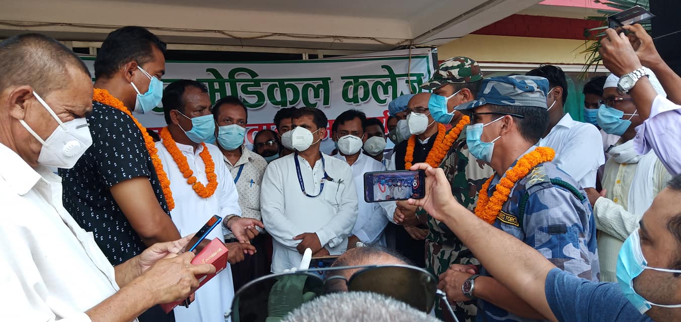 बिरगंज । काेराेना भाइरस (काेभिड १९) संक्रमण राेकथाम तथा नियन्त्रणकाे लागि जारी निषेधाज्ञा उलंघन गर्दै नेशनल मेडिकल कलेज अस्थाई कोरोना अस्पतालको शुक्रबार उद्घाटन गरिएकाे छ ।