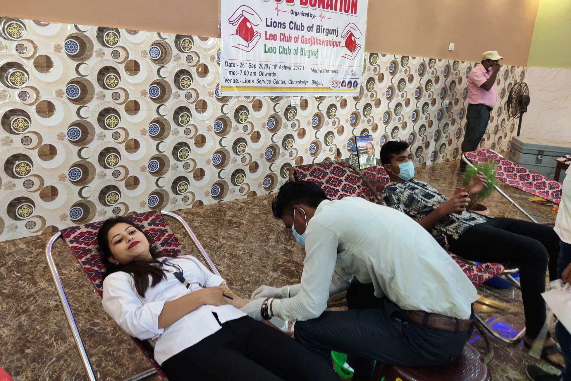 लायन्स सर्भिस सेन्टर वीरगंजमा भएकाे कार्यक्रममा २ महिलासहित ४५ जनाले रक्तदान गरेकाे रक्त संचार केन्द्र वीरगंजका प्रमुख साैरभ राज पाण्डेले वताए ।