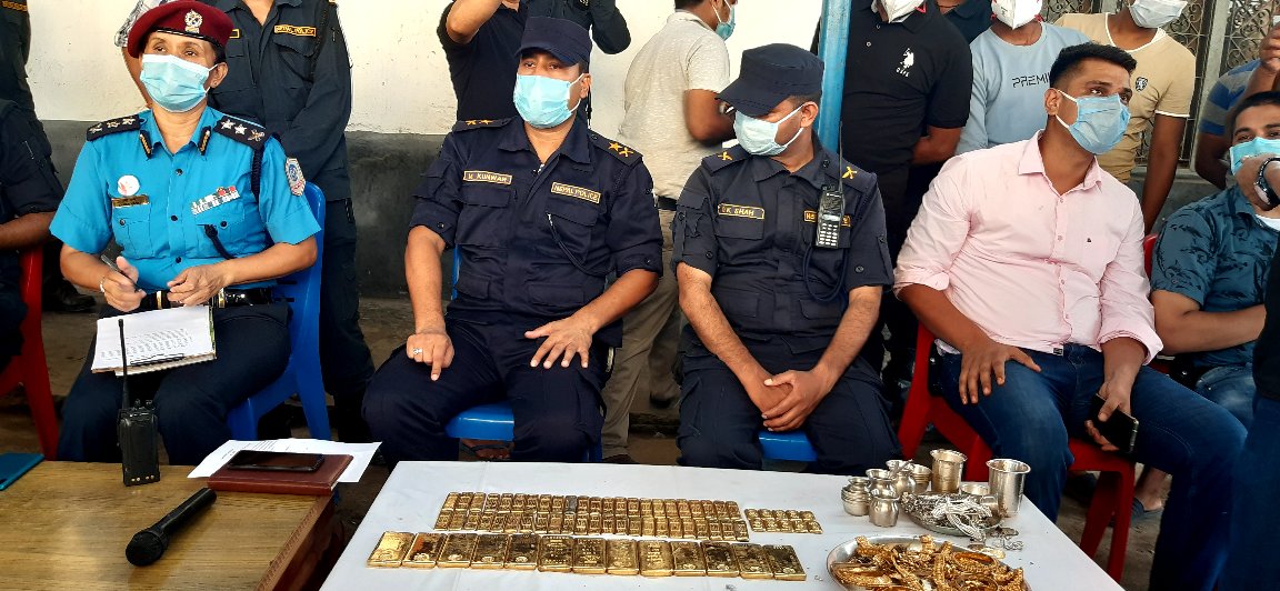 पत्रकार सम्मेलनमा बरामद गरिएको सुनमध्ये १ केजीको विस्कुट १३ वटा (१३ केजी), मझौला विस्कुट ४६ पिस (८ केजी ५ सय ७६ ग्राम) तथा सानो १ सय ग्रामको १० पिस सुनको विस्कुट १० पिस १ केजी तथा सुनका गरगहनाहरु ६८१ ग्राम गरि २२ केजी ५ सय ७६ ग्राम सुन बरामद भएको छ भने चाँदीको गरगहना एवं भाँडाकुँडा २ केजी २६२ ग्राम बरामद भएको प्रहरी उपरीक्षक पन्तले जानकारी दिइन् ।