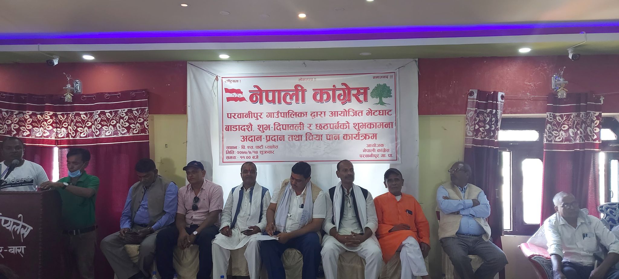 वीरगंज । बाराकाे परवानीपुर गाउँपालिकामा नेपाली काँग्रेसकाे शुभकामना अदानप्रदान कार्यक्रम सम्पन्न भएकाे छ । नेपाली काँग्रेस परवानीपुर गाउँपालिकाकाे आयाेजनामा शुभ दपावली तथा छठ पर्वकाे शुभकामना अदानप्रदान कार्यक्रम सम्पन्न भएकाे हाे ।