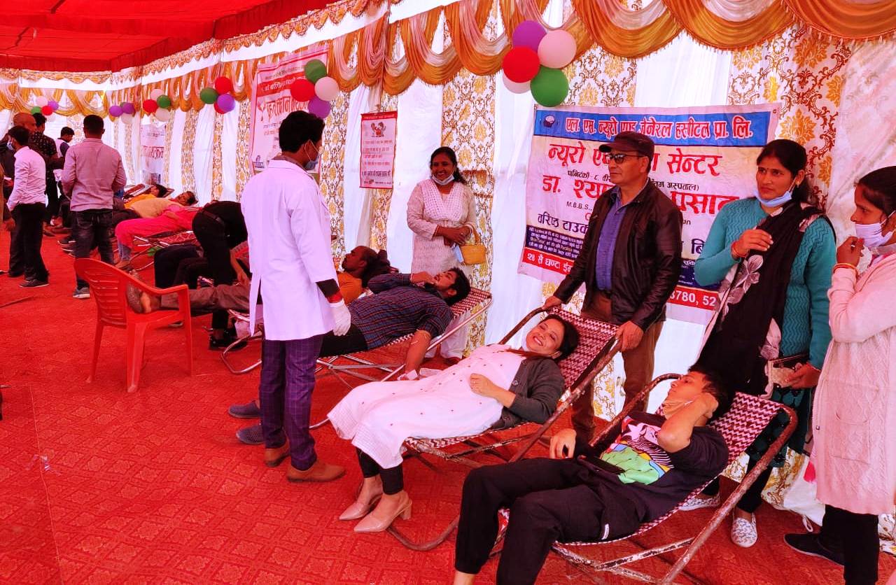 वीरगंज मुर्ली बगैचास्थित रहेकाे एफएम परिसरमा भएकाे कार्यक्रममा २१ महिलासहित २ सय ६१ जनाले रक्तादन गरेकाे रक्त संचार केन्द्र वीरगंजका प्रमुख सराैभ राज पाण्डेले वताए ।