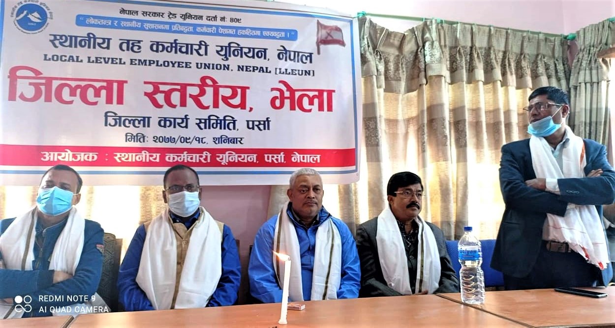 बीरगन्ज । स्थानीय तह कर्मचारी युनियन नेपाल जिल्ला कार्यसमिति पर्साको जिल्ला स्तरीय भेला सम्पन्न भएको छ । स्थानीय तह कर्मचारी युनियनका उपाध्यक्ष सुनील कर्णको सभापतित्वमा सम्पन्न भेलाले १३ सदस्यीय नया कार्यसमिति चयन गरेको छ ।