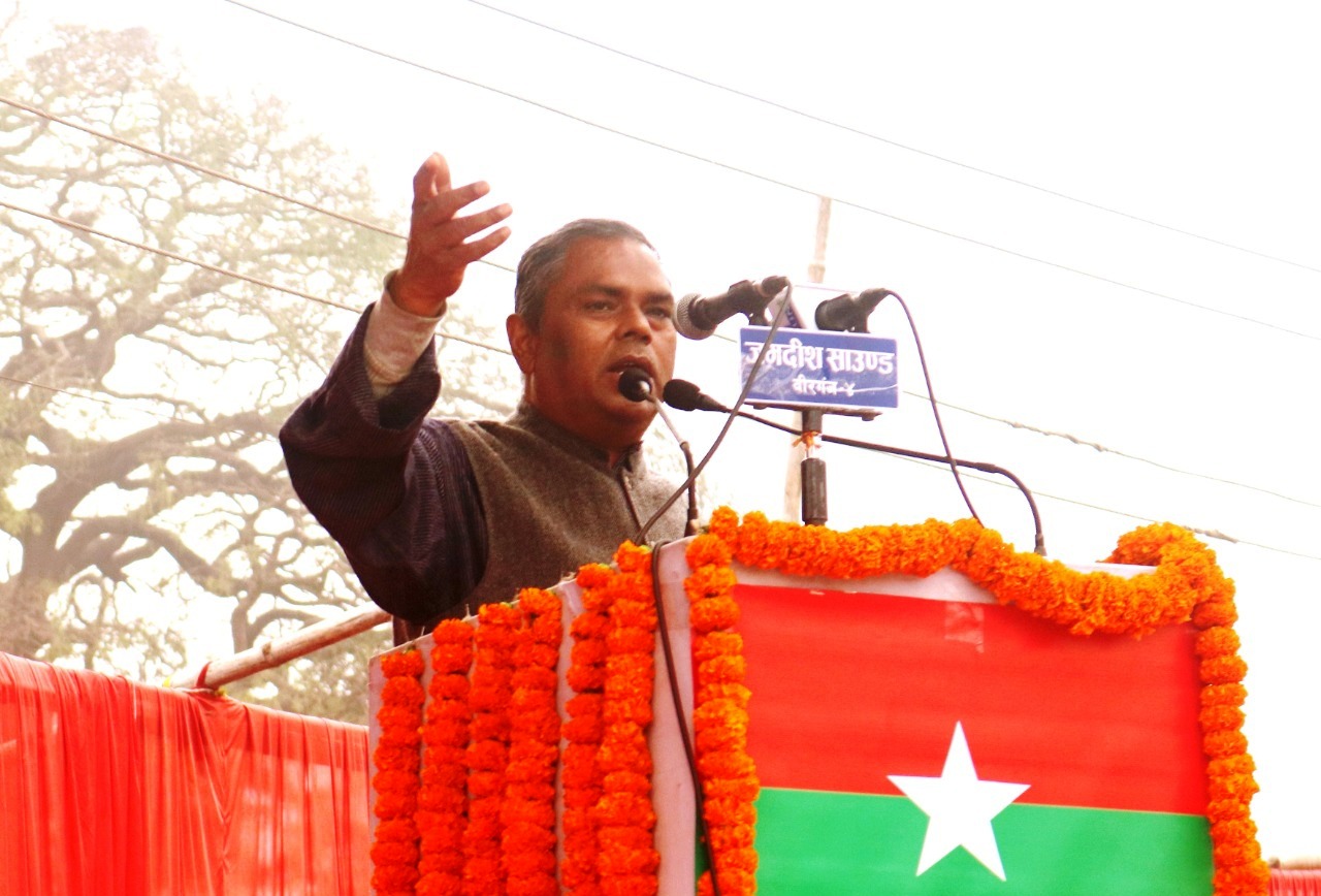 प्रतिनिधि सभा विघटनकाे विराेधमा जनता समाजवादी पार्टीले साेमबार वीरगन्जमा आयाेजना गरेकाे जनप्रदर्शन एवम् विरोध कार्यक्रमलाई सम्बोधन गर्दै अध्यक्ष यादवले नष्लवादी राष्ट्रवादको मुखौटा लगाएका प्रधानमन्त्री ओलीको वास्तविक रुप अहिले सामुने आएको बताए ।
