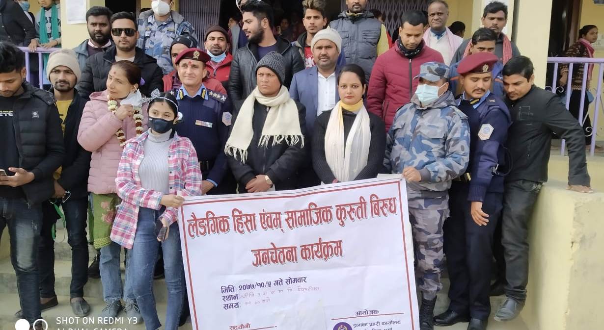 वीरगंज । पाेखरियामा साेमबार लैंगिक हिंसा एवम् समाजिक कुरुती विरुद्धकाे जनचेतना कार्यक्रम सम्पन्न भएकाे छ । पाेखरिया नगरपालिकाकाे सहयाेग र इलाका प्रहरी कार्यालय पाेखरियाकाे आयाेजनामा भएकाे कार्यक्रम सम्पन्न भएकाे हाे ।
