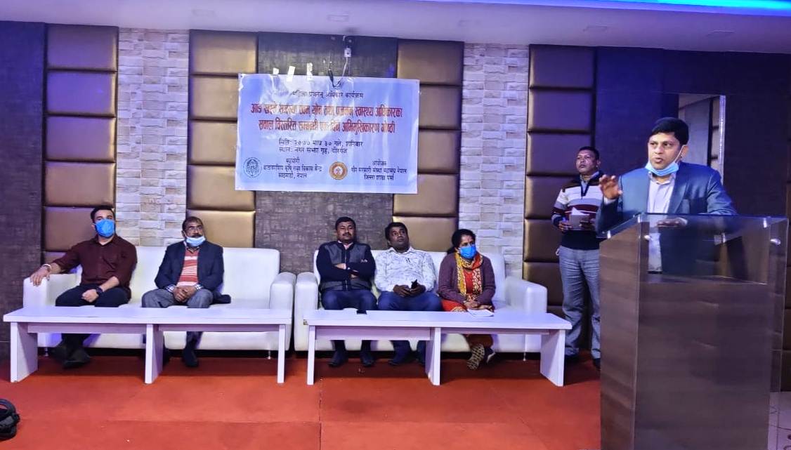 महिला प्रजनन् अधिकारकाे क्षेत्रमा काम गर्ने पर्साका १० गैर सरकारी संस्थाका एक महिला र एक पुरुष प्रतिनिधि गरी २० जनाकाे सहभागिता रहेकाे गाेष्ठिमा प्रशिक्षक ईश्वरी नेपाल, निर्मल साह, रमेश भटराईले प्रशिक्षण दिएका थिए ।