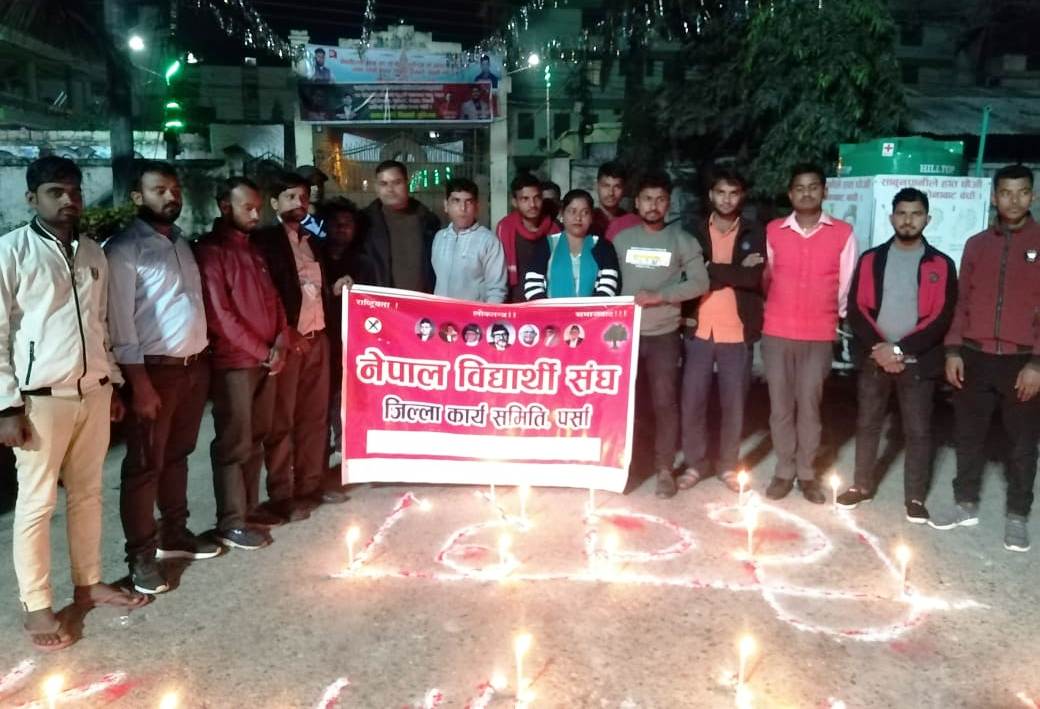 वीरगंज । नेपाल विद्यार्थी (नेवि) संघ पर्साले ७१ औँ प्रजातन्त्र दिवशकाे अवसरमा शुक्रबार दिप प्रजवलन गरेकाे छ ।