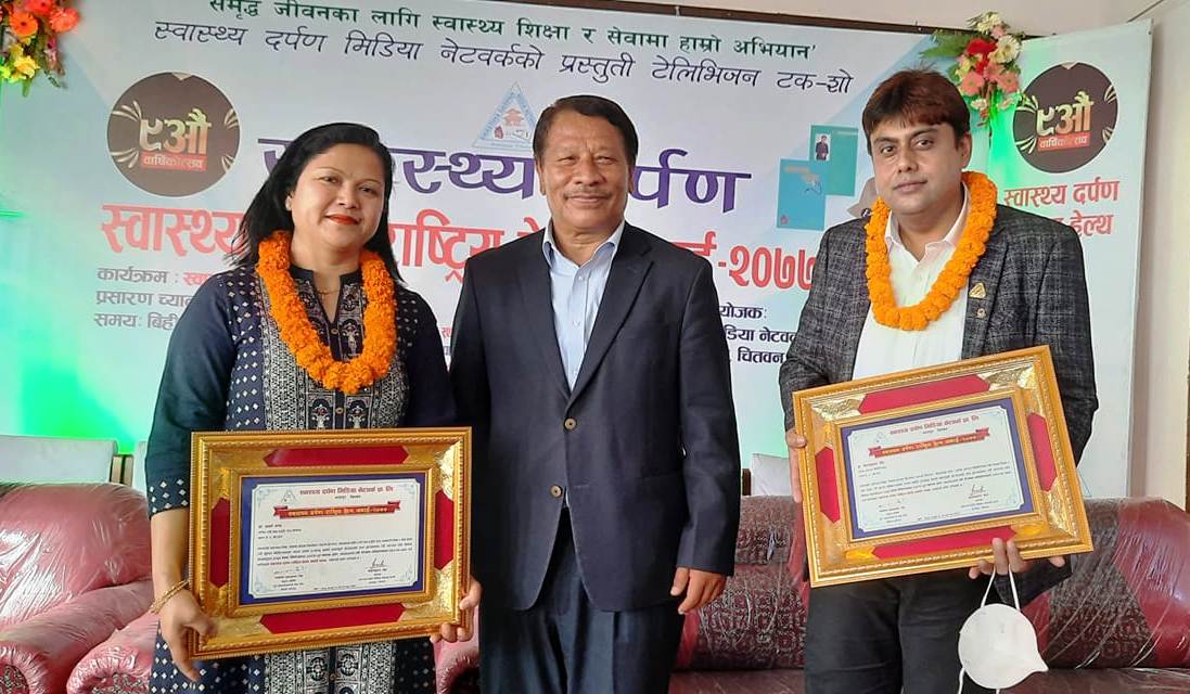 नेपाल टेलिभिजनमा प्रसारण हुने स्वास्थ्य दर्पण मिडियाद्वारा कोविड १९ महामारीमा महिला स्वास्थ्य क्षेत्रमा पुर्याएको योगदानका वापत दुबै जना सम्मानित भएका हुन् ।