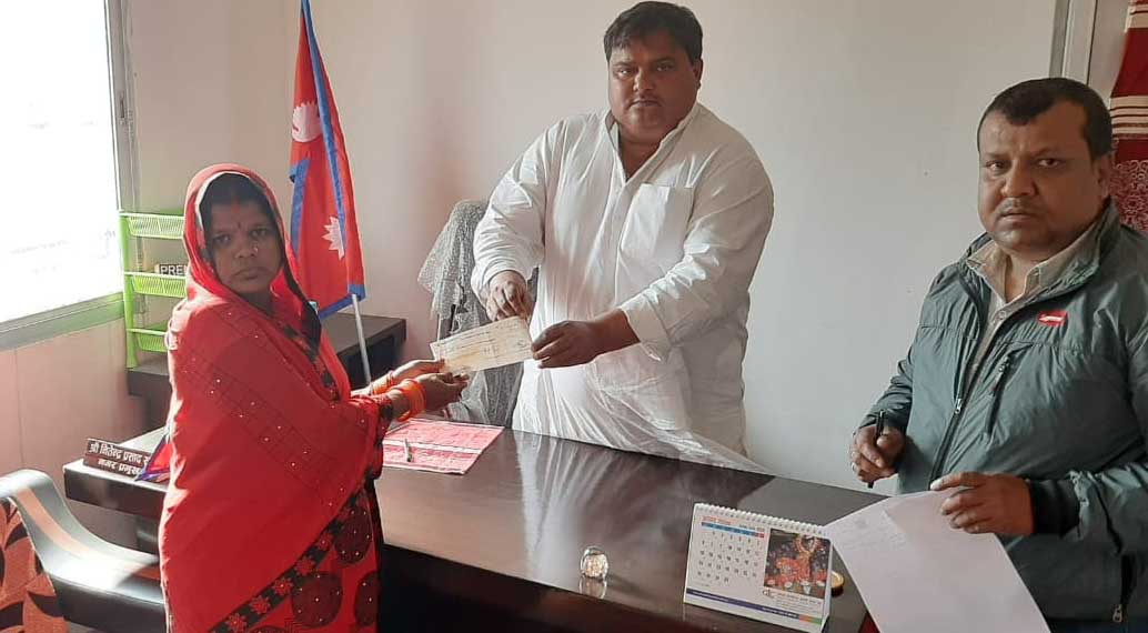 सहयोग रकमको चेक नगर प्रमुख नितेन्द्र साहले मंगलबार मुक्ति रामकी आमा लालमुनि रामलाई र विविके कुमार साहको बुवा गम्भिरा साहलाई हस्तानान्तरण गरेका थिए ।