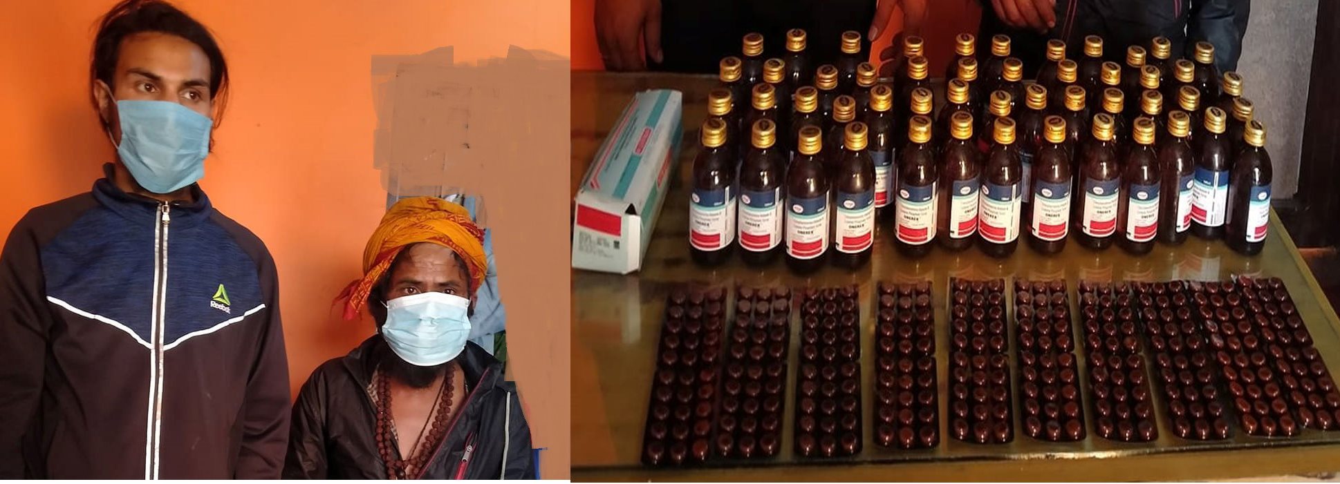 भारतबाट नेपालतर्फ पैदल आउँदै गरेका दुबै जनामाथी शंका लागी शरीर खानतलासी गर्दा निजहरूले बोकेको तरकारी हालेको बोरामा लुकाइछिपाई ल्याएको लागु औषध ONEREX-100ml ५० बोतल र नाइट्रोभेट १० पत्ता ३ सय ट्याव्लेट फेला परेकोले नियन्त्रणमा लिइएकाे जिल्ला प्रहरी कार्यालय पर्साले जनाएकाे छ ।