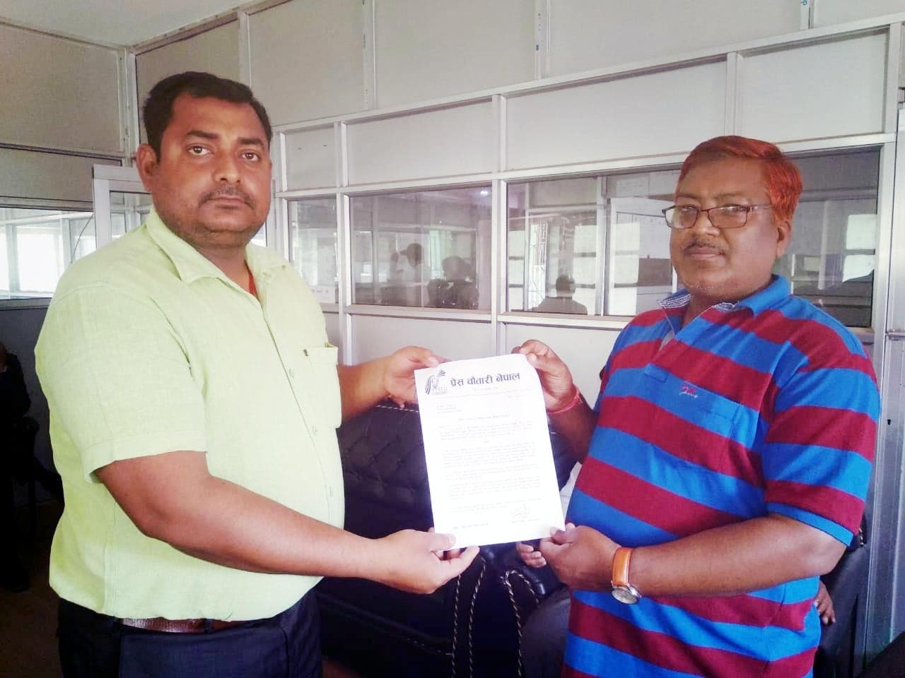 प्रेस चौतारी नेपाल पर्साका अध्यक्ष अनुप तिवारीको नेतृत्वकाे संचारकर्मीहरुकाे टाेलीले वीरगंज महानगरपालिकाकाे सुचना अधिकारी अरबिन्दलाल कर्णसँग सूचनाको हक सम्बन्धी ऐन अनुसार सुचना माग गर्दै निवेदन दर्ता गराएका छन् ।