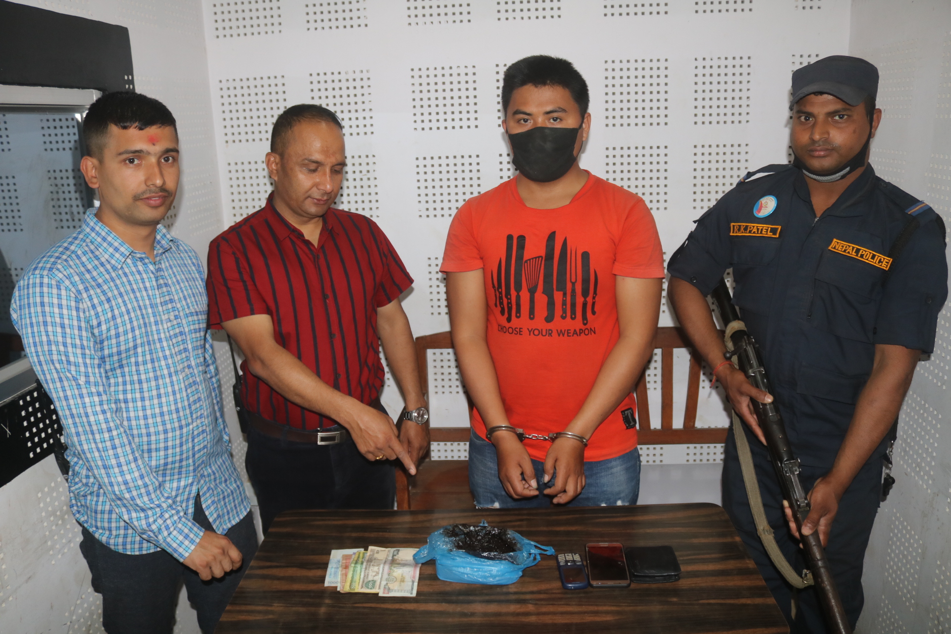 विशेष सूचनाको आधारमा खटिएकाे प्रहरी टाेलीले शनिबार दिउसाे एक बजेको समयमा बारा जिल्ला बारागढी गाउँपालिका वडा नं.१ भवानीपुरस्थित सडक खण्डबाट जितपुरसिमरा उपमहानगरपालिका वडा नं.१६ टागियाबस्ती टोल बस्ने बर्ष २७ को राजकुमार योन्जन तामाङलाई पक्राउ गरेकाे हाे ।