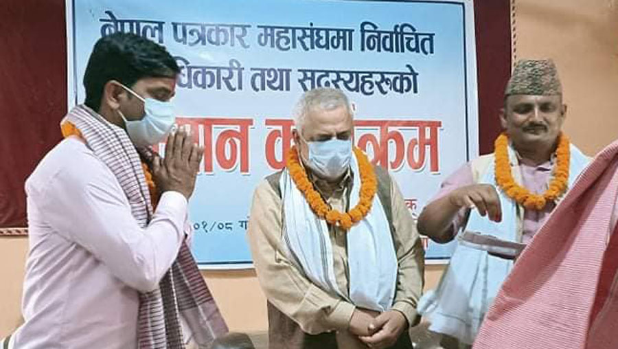 वीरगंज । प्रेस चौतारी नेपाल पर्साले बुधबार नेपाल पत्रकार महासंघको निर्वाचनमा निर्वाचित पदाधिकारी तथा सदस्यहरुलाई सम्मान गरेको छ ।