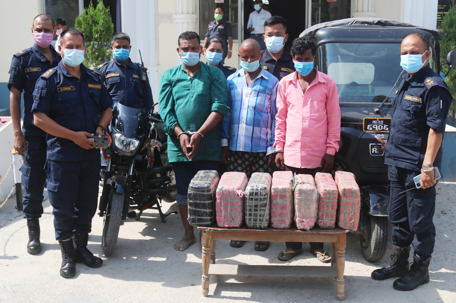 लागू औषध नियन्त्रण व्यूरो शाखा कार्यालय वीरगंजमा प्राप्त विशेष सूचनाको आधारमा साेमबार दिउसाे डेढ बजे लागू औषध नियन्त्रण व्यूरो शाखा कार्यालय वीरगंज र जिल्ला प्रहरी कार्यालय बाराबाट खटिएको संयुक्त प्रहरी टोलीले तिनै जनालाई लागु औषध गाँजासहित पक्राउ गरेकाे हाे ।