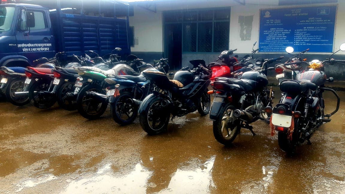 जिल्ला प्रहरी कार्यालय पर्साबाट खटिएकाे प्रहरी टाेलीले बिआर ०५ एजि २७१७, बिआर २२ जेड ११४७, बिआर ०० एपि २०२५, जेएच ०२ क्यु ३३०४, एउटा वन टेन्ट बुलेट र ३ वटा नम्बर नखुलेकाे माेटरसाइकल नियन्त्रणमा लिएकाे हाे ।