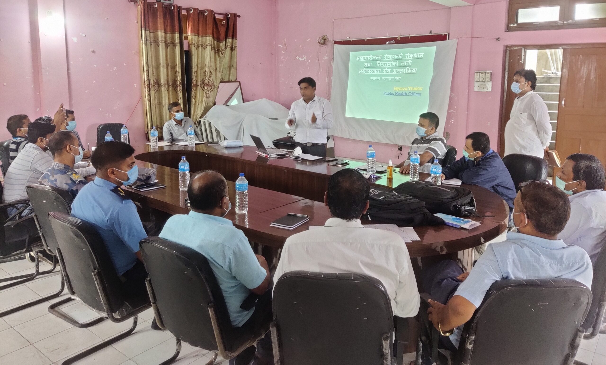 स्वास्थ्य कार्यालय पर्साका निमित प्रमुख नवलकिशाेर साहकाे अध्यक्षता र पर्साका सहायक प्रमुख जिल्ला अधिकारी भिमकान्त पाैडेलकाे प्रमुख आतिथ्यतामा भएकाे कार्यक्रमको सहजिकरण स्वास्थ्य कार्यालयका स्वास्थ्य निरिक्षक जयमाेद ठाकुरले गरेका थिए ।