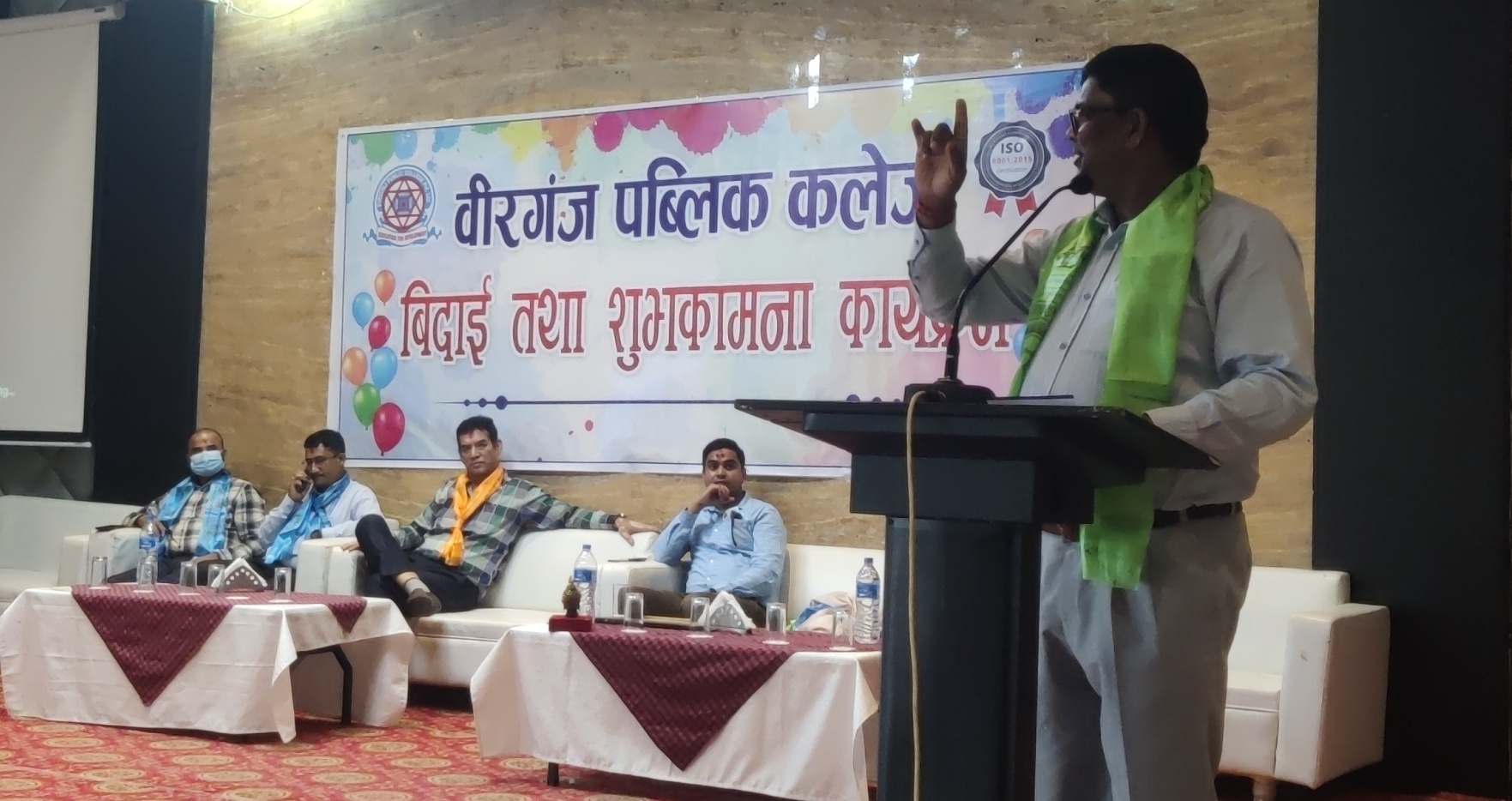 वीरगंज । वीरगंज पब्लिक कलेजले बिहिबार आयाेजनाकाे गरेकाे कक्षा १२ का विद्यार्थीहरुकाे बिदाई तथा शुभकामना कार्यक्रम सम्पन्न भएकाे छ । हाेटल भिस्वामा भएकाे कार्यक्रमकाे उद्घाटन रेडियाे वीरगंजका कार्यकारी अध्यक्ष ध्रुव साहले गरेका थिए ।