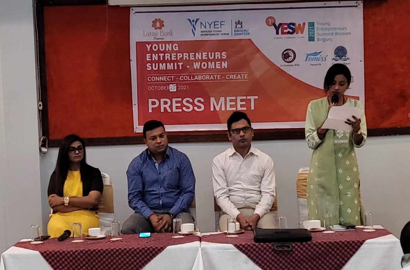 एनवाईईएफले बुधबार वीरगंजमा पत्रकार सम्मेलन गर्दै मोफसलमै पहिलो पटक नेपालको मुख्य औद्योगिक तथा व्यापारिक नगर वीरगञ्जमा आयोजना हुन गइरहेको सम्मेलनले महिला उद्याशीलता प्रवर्धनमा महत्वपूर्ण सहयोग पुग्ने विश्वास रहेकाे जनाएकाे हाे ।