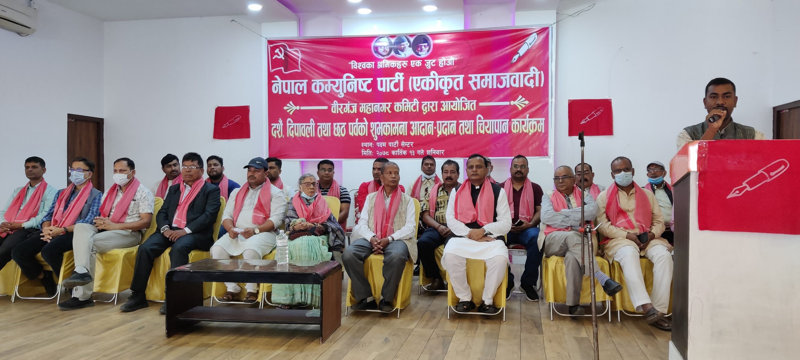 वीरगंज । नेकपा (एकीकृत समाजवादी) वीरगंज महानगर कमिटीको आयोजनामा शनिबार वीरगंजमा दिपावली तथा छठ पर्वको शुभकामना आदानप्रदान तथा चियापान कार्यक्रम सम्पन्न भएको छ ।