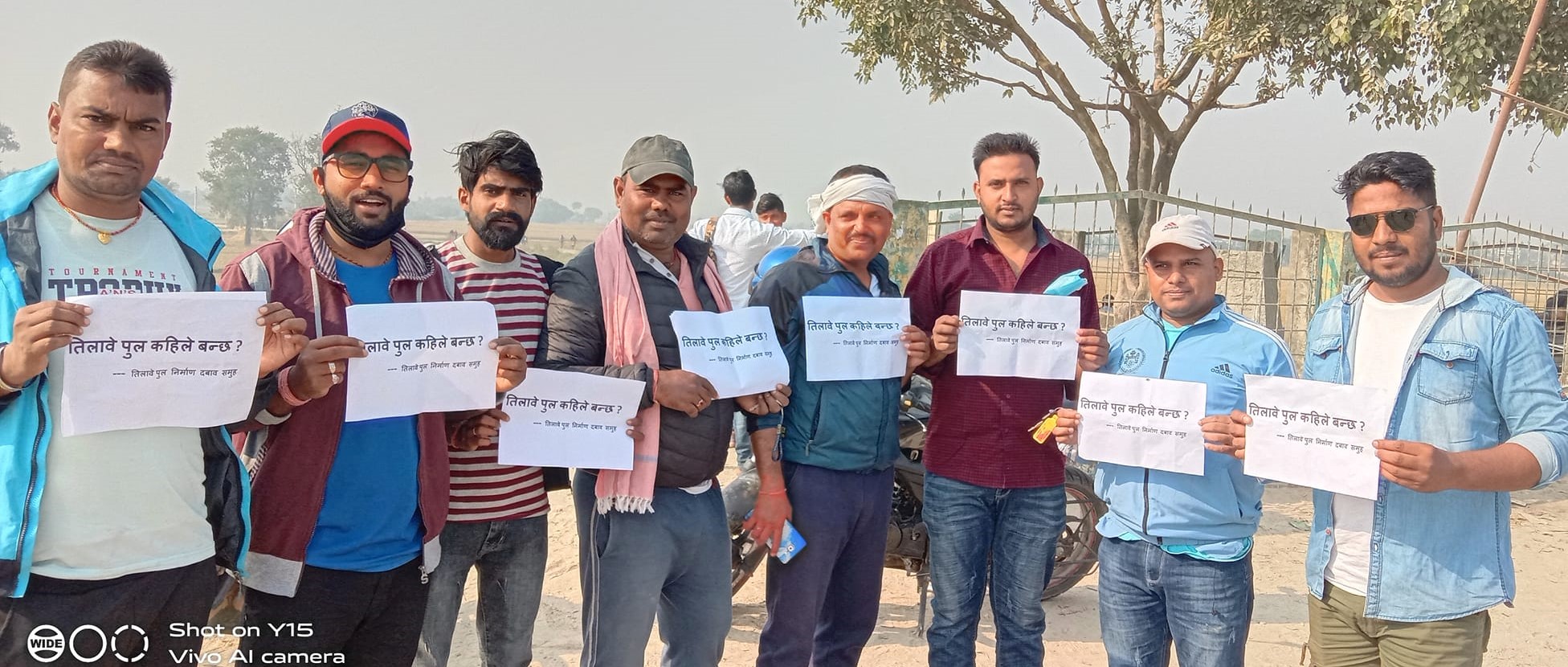 साेही क्रममा शनिबार पनि आन्दाेलित युवाहरुले पुल निर्माण स्थलमा प्रदर्शन गरेका छन् । युवाहरुकाे एक समुहले पुल निर्माण कहिले ? लेखिएकाे पम्पलेट हालमा लिएर शान्तिपूर्ण प्रदर्शन गरेका थिए ।