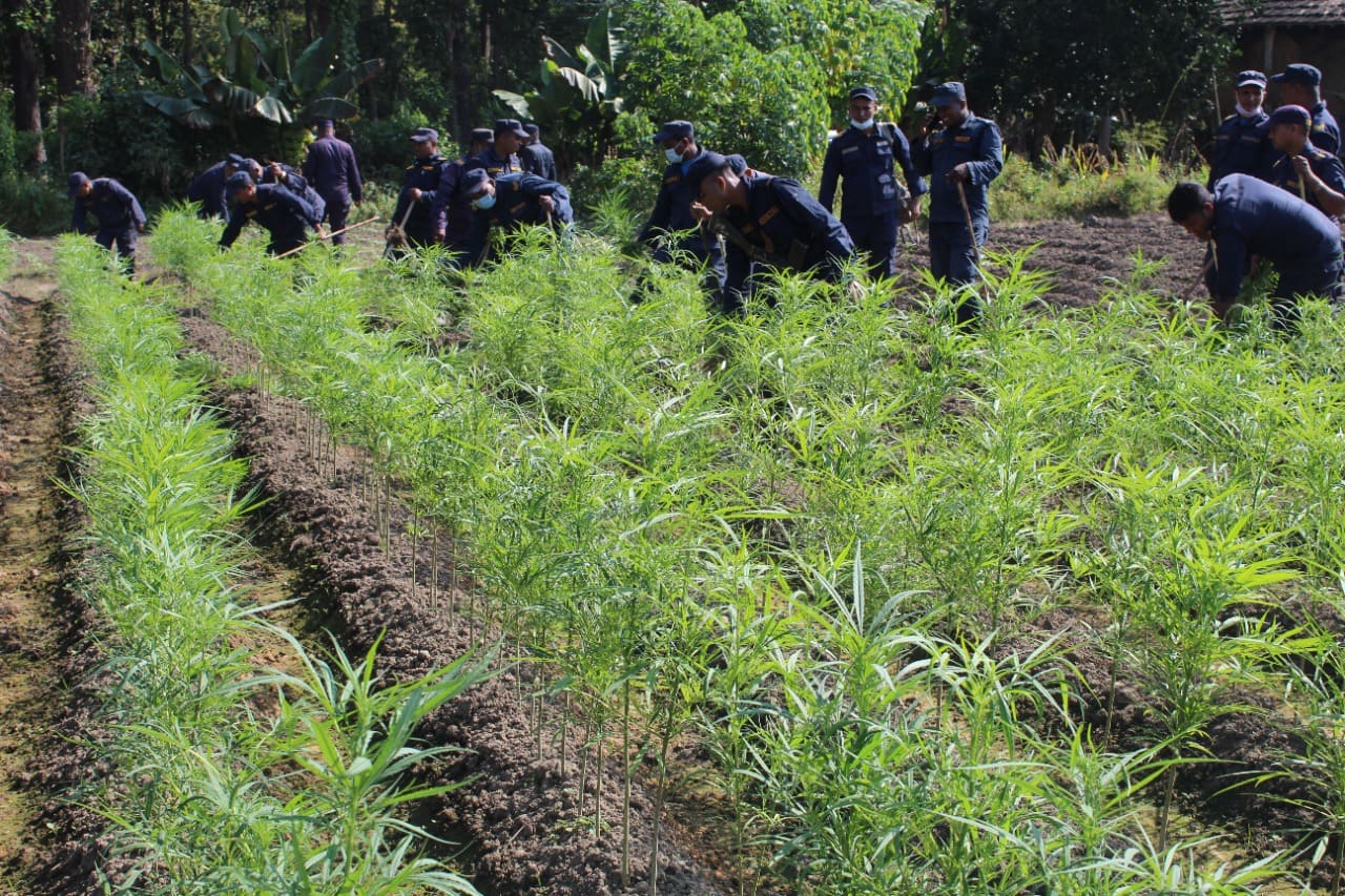 एघार बिघाको गाँजा खेती फडानी