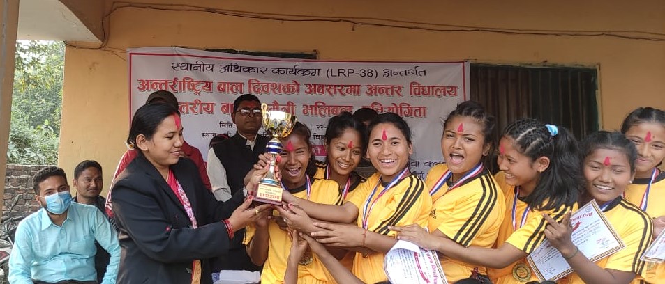 वीरगंज । पर्साकाे पटेर्वा सुगौली गाउँपालीकामा रहेका माध्यामिक विद्यालय स्तरीय बालिका मैत्री भलिबल प्रतियोगिता सम्पन्न भएको छ । शिक्षामा बालिकाहरुको पहुँच बढाउनको लागि दिव्य यूवा क्लव, पर्साले एक्सन एड नेपालको साझेदारीमा संचालित स्थानीय अधिकार कार्यक्रम अन्तर्गत भएकाे प्रतियाेगिता सम्पन्न भएकाे हाे ।