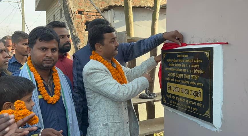 बर्षाैदेखी अलपत्र रहेको वीरगंज महानगरपालिका–२३ ईटियाहीका दलित बस्तीमा सांसद यादवको संसदीय विकास कोषको १० लाखको लागतमा बनेको ढलान सडक र नालाको शनिबार उद्घाटन गरिएको हो । निर्माण भएको ढलान सडक र नालाको उद्घाट गर्दै सांसद यादवले सडकसंगसंगै हरेक विकास निर्माणको कार्यलाई अगाडी बढाईने बताए ।