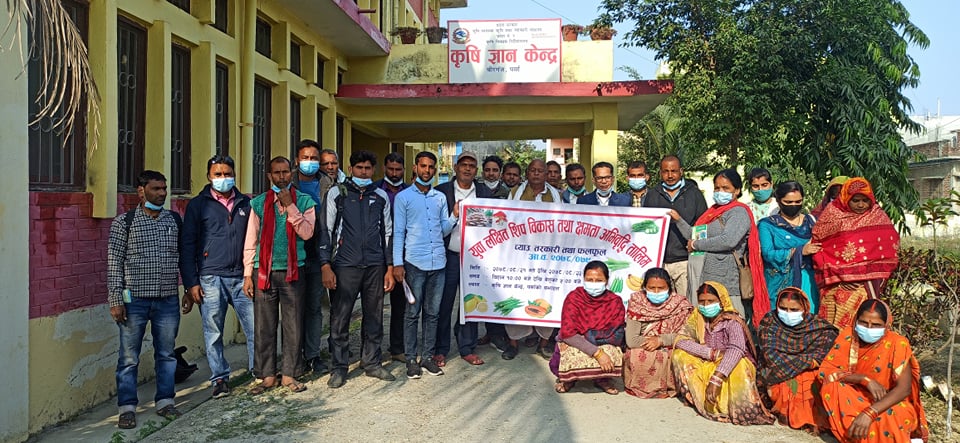 वीरगंज । कृषि ज्ञान केन्द्र पर्साकाे आयोजनामा ३ दिने युवा लक्षित शिप विकास क्षमता अभिवृद्धि व्यावसायिक च्याउ, तरकारी तथा फलफूल खेती तालिम बिहिवार सम्पन्न भएको छ।