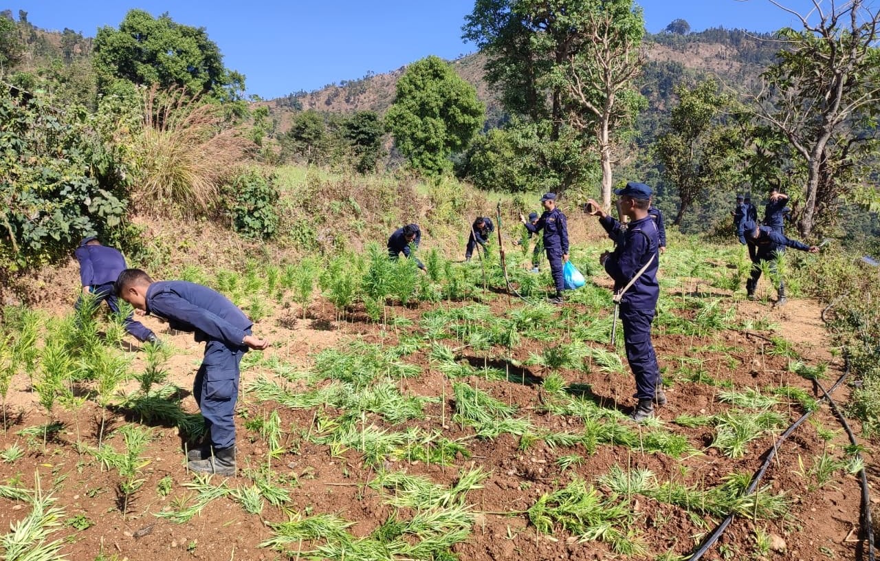 प्ररहीले शनिबार मकवानपुरकाे राक्सिराङ गा.पा.वडा नं. ५ अन्तर्गत धुर्सिङ, निबुटार र लाइसीराङस्थितको वडा एरियाहरुमा अबैध रुपमा लगाईएको ८ बिगाहा लागुऔषध गाँजा खेती फडानी गरी नष्ट गरिएकाे हाे ।