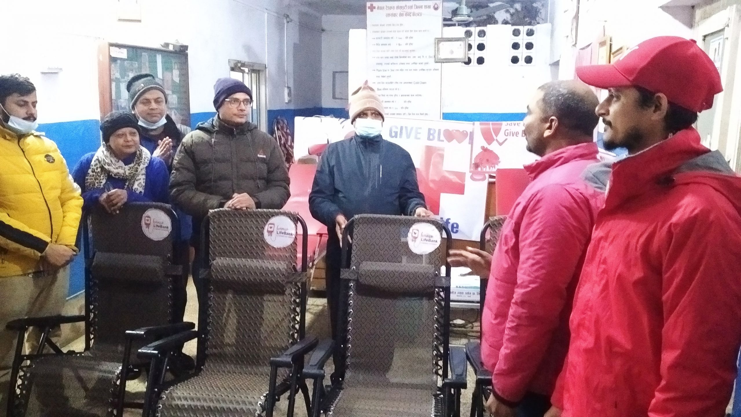 वीरगंज । लाईफ बैंक, काठमाडौंले गैरआवासीय नेपाली संघ रक्त सञ्चार समितिको संयोजनमा नेपाल रेडक्रस सोसाइटी रक्तसञ्चार सेवा विरगंज, पर्सालाई चार वटा रक्तदान कुर्सी हस्तान्तरण गरेको छ ।
