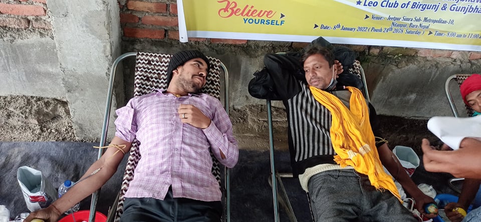 वीरगंज । बाराकाे जीतपुरसिमरा उपमहानगरपालिका वड़ा नं. १० नितनपुरमा शनिबार वृहत खुल्ला रक्तदान कार्यक्रम सम्पन्न भएको छ । लायन्स क्लब अफ वीरगञ्ज, सेन्ट्रल, हेल्दी, तथा लियो क्लब ऑफ बीरगंज तथा गंजभवानीपुरको संयुक्त आयोजनामा भएकाे कार्यक्रममा ३ महिलासहित ७८ जनाले रक्तदान गरेकाे क्लबका सचिव पप्पू श्रीवास्तवले जानकारी दिए ।