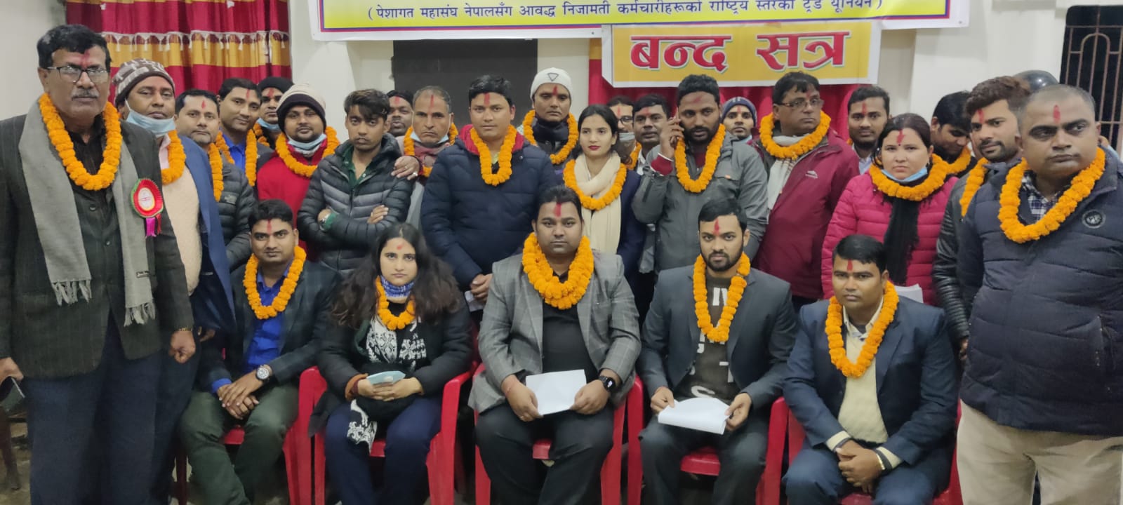 संगठनको उपाध्यक्षमा संदिप कुमार पटेल, महिला उपाध्यक्षमा निशा दाहाल, सचिवमा सुरेन्द्र प्रसाद यादव, सह–सचिवमा रामसुन्दर महतो, कोषाध्यक्षमा राजेश राम, सदस्यहरु बन्दना खतिवडा, टिका मायाँ वस्नेत, मन्जु कायस्थ, रितु कुशवाहा, सुरेश प्रसाद यादव, सदाम हुसेन, राकेश साह, संदेश कुशवाहा, रमेश गुप्ता, उपेन्द्र प्रसाद गाैराे, विनाेद मिश्र, संदिप साह, पप्पु कुमार पटेल, सराेज यादव, नरेन्द्र प्रसाद यादव निर्विराेध निर्वाचित भएकाे उनले वताए ।