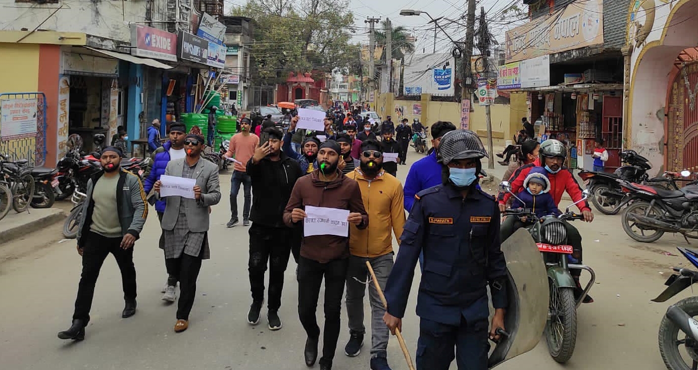 संगठनका अध्यक्ष मोहमद नेजामको अध्यक्षतामा निस्केकाे जुलुशमा नेविसंघका सुधिर पटेल, युवा संघका अरुण यादव, अनिल पटेल, लोसपाका सुजित गिरी, अनेरास्ववियु ठाकुरराम बहुमुखी क्याम्पस इकाई कमिटी अध्यक्ष आशिफ अहमद, अखिल क्रान्तिकारीका वीरगञ्ज महानगर सचिव मिरोज अहमद लगायतको सहभागिता रहेको थियो ।