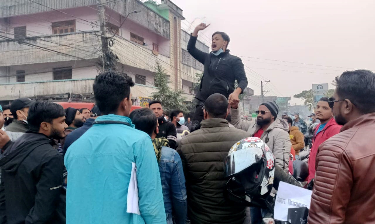 सयुंक्त युवा विद्यार्थी संगठनद्वारा लोसपाका युवा नेता राजु गुप्ताको अध्यक्षतामा भएकाे विरोध प्रदर्शनमा नेवि संघका सुधिर पटेल, लाेसपाका सुजित गीरी, महादेव कुर्मी, अली हसन, अमित यादव, सगीर अली लगायतको सहभागिता रहेको थियो ।