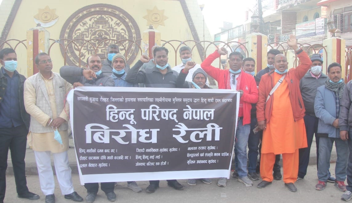 पर्सा । रौतहट जिल्ला इशनाथ नगरपालिका बड़ा नं. ५ लक्ष्मीनियामा हिन्दू समाजमाथि भएको आक्रमणको विरोधमा हिन्दु परिषद नेपालले वीरगंजमा प्रदर्शन गरेको छ ।
