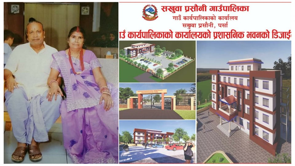 वीरगंज । पर्साकाे सखुवा प्रसाैनी गाउँपालिकाकाे भवन निर्मणकाे लागि गाउँपालिका अध्यक्ष प्रदिप जयसवालका आमा-बुवाले जग्गा दान गरेका छन् । अध्यक्ष जयसवालका बुवा रामेश्वर प्रसाद कलवार र आमा कलवाती देवीले ९ कठ्ठा २ धुर जग्गा दान गरेका हुन् ।